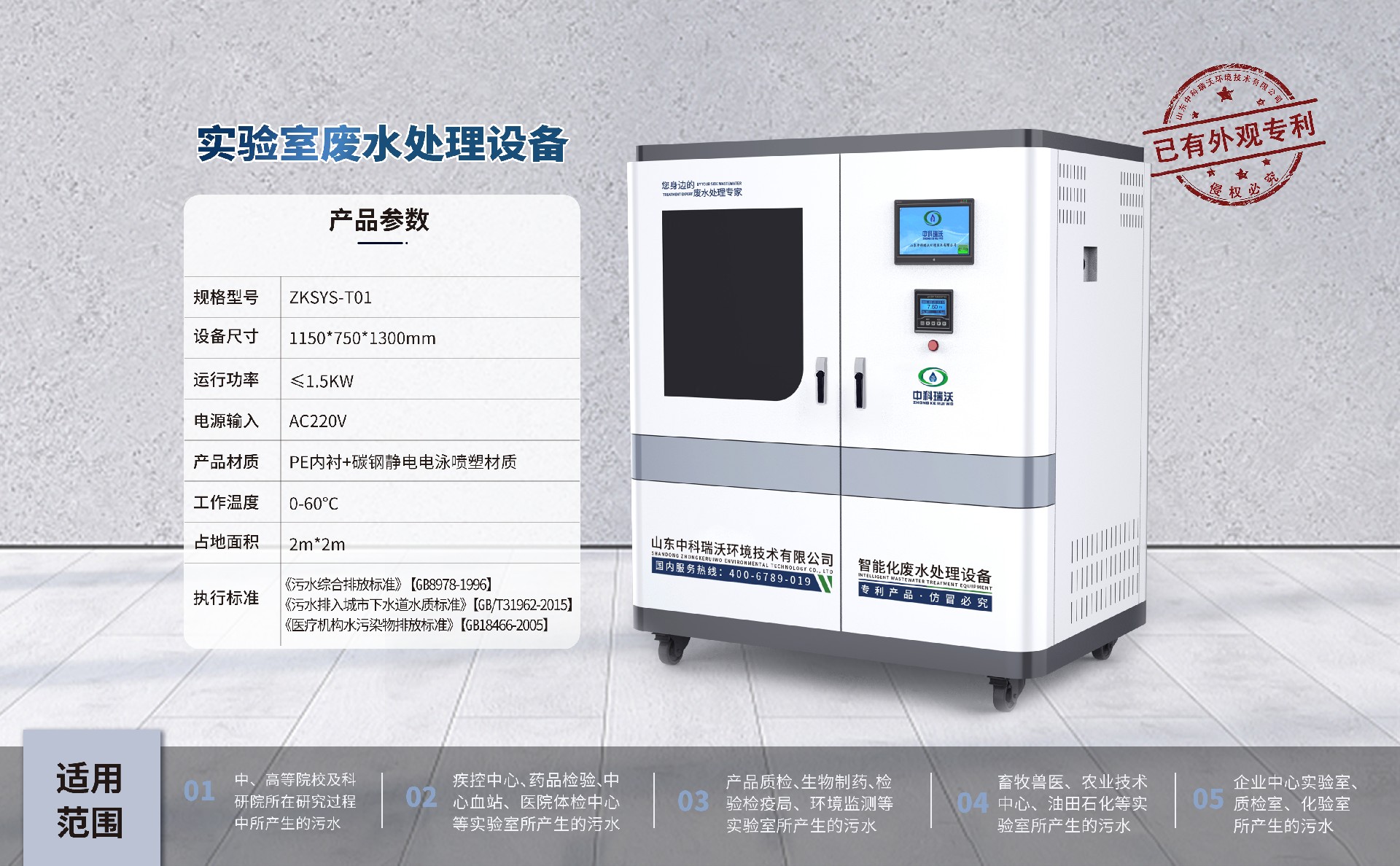 該設備被廣泛應用于中、高院校、科研院所、醫(yī)療機構、生物制藥、疾控中心、環(huán)監(jiān)、產(chǎn)品質(zhì)檢、檢疫檢驗、藥品檢驗、血站、畜牧、醫(yī)院、石油化工、企業(yè)等實驗室、化驗室的綜合廢水處理,憑借穩(wěn)定性能,優(yōu)質(zhì)處理結果,受到廣大客戶的一直好評。